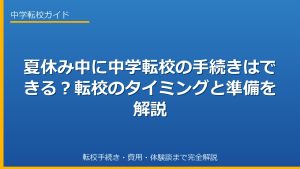 夏休みは、新しい環境への一歩を踏み出すのに適した時期だと考える方は少なくありません。特に中学転校となると、お子さんの心身への負担や手続きの複雑さに、親御さんも大きな不安を感じることでしょう。 「夏休み中に転校手続きって本 […]