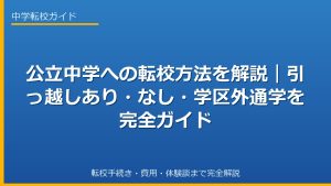 学区外通学とは、住民票がある住所の指定された学区外の公立中学校に通学することです。通常の転校は、住居の移転(引っ越し)に伴い、転居先の学区にある中学校に転校することを指します。